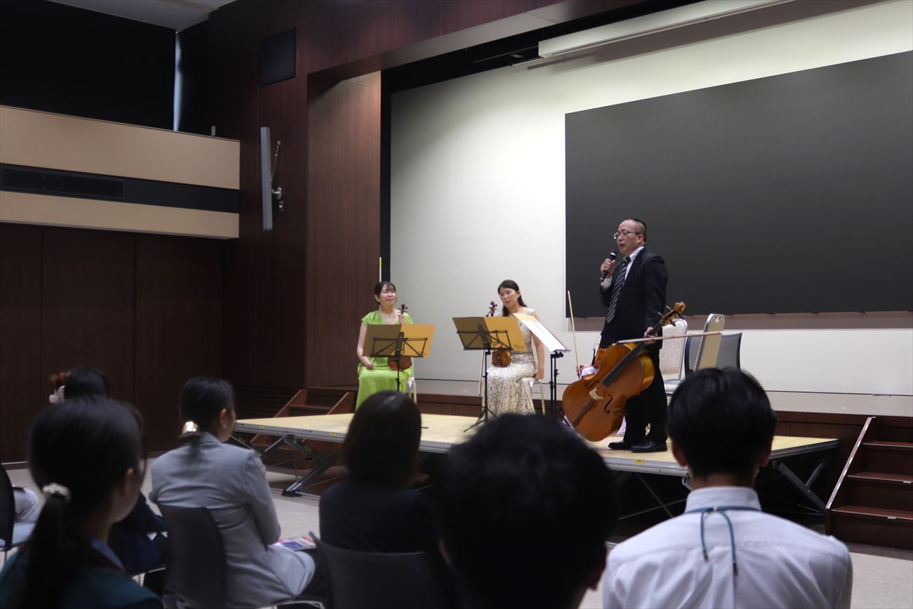 今年はミュージカルとオペラの楽曲をメインに、弦楽四重奏で13曲披露していただきました。 曲目の一部は職員のリクエスト曲も入っており、ゆったりと楽しいひとときとなりました。