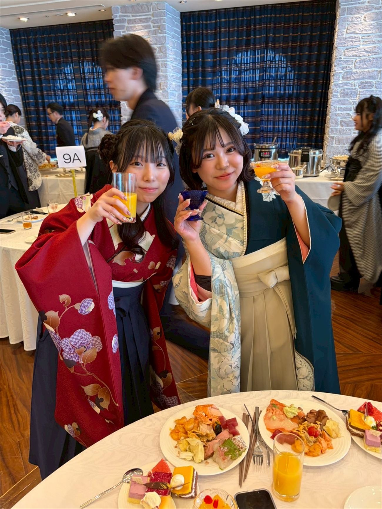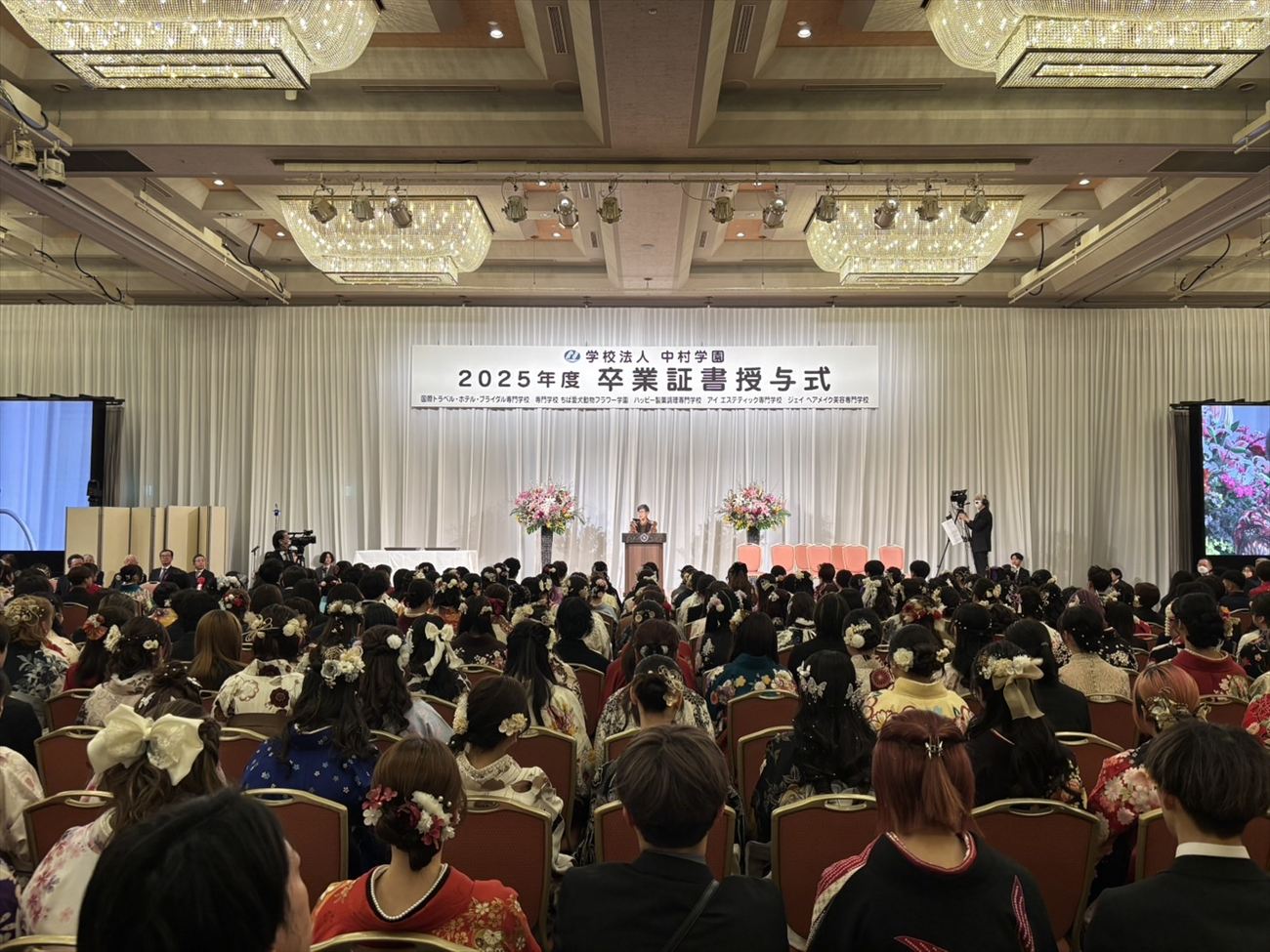 卒業生は、ヘアアレンジやメイク、着付けなど、こだわりの感じられる華やかな装いで出席し、美容学生らしい姿が印象的でした。