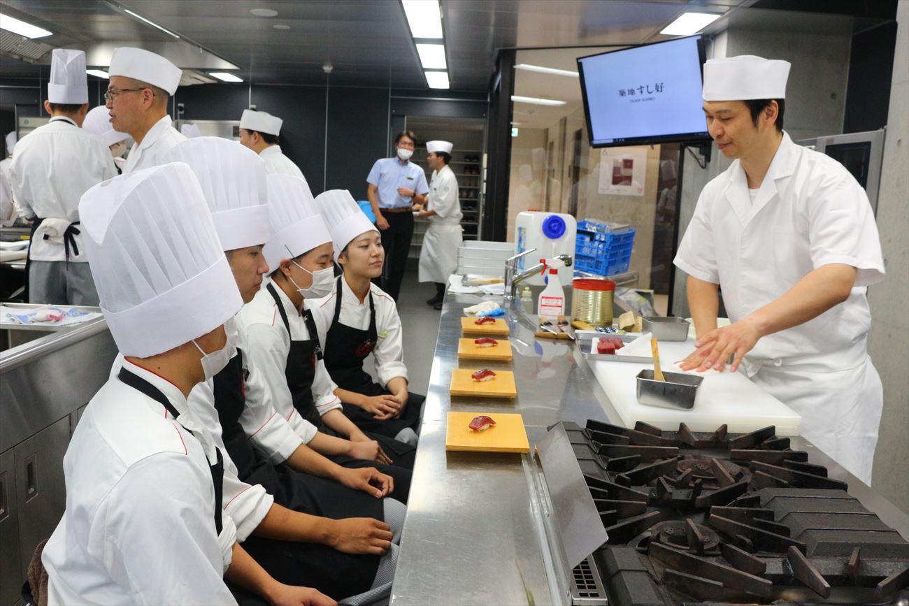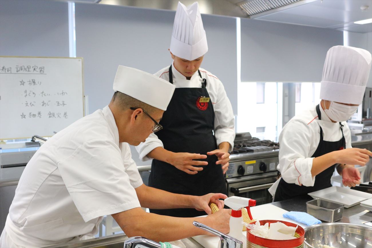 美味しく握るコツなど色々細かく教えていただき、生徒たちも全員前のめりになって聞いていました。